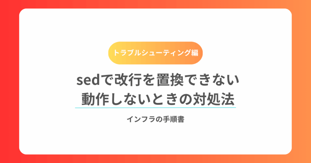 ファイルや文字列を処理していて「改行を置換したい」というケースはよくあります。しかし、単純に \n を書いても期待通りに動かないことが多いです。 この記事では、sedで改行を置換する際の注意点と解決方法を解説します。 1. sedは1行単位で処理してい... -