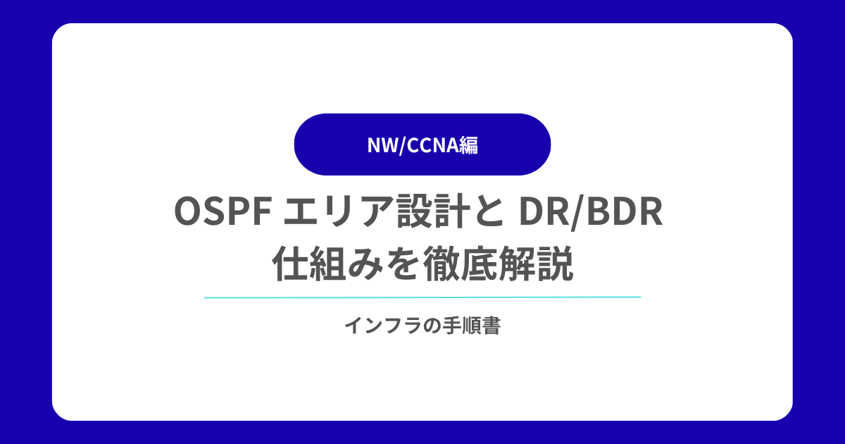 OSPF(Open Shortest Path First)は、CCNA学習でも特に重要なルーティングプロトコルの一つです。 本記事では、OSPFのエリア設計とDR/BDR(指定ルータ/バックアップ指定ルータ)の仕組みについて、初学者にもわかりやすく整理します。