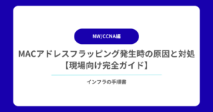スイッチ上で MACアドレスフラッピング(MAC Flapping) が発生すると、通信断・不安定・遅延などの重大な障害につながります。本記事では、実務でよく遭遇する原因と、…