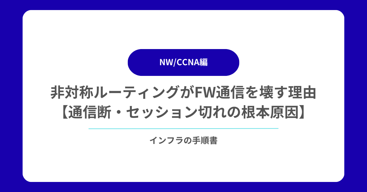 本記事では、非対称ルーティングがなぜFW通信を壊すのかを、 セッション管理・パケットの流れ・実務での対処手順まで含めて解説します。