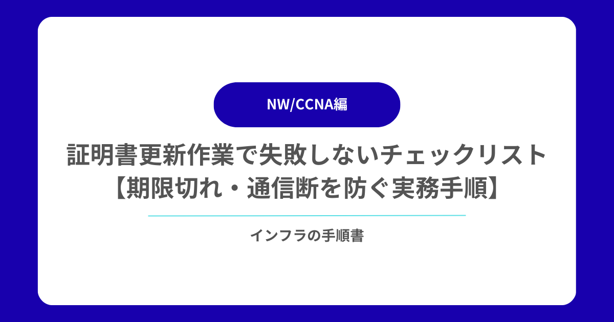 証明書更新は一見単純に見えますが、確認漏れがあると即障害に直結します。