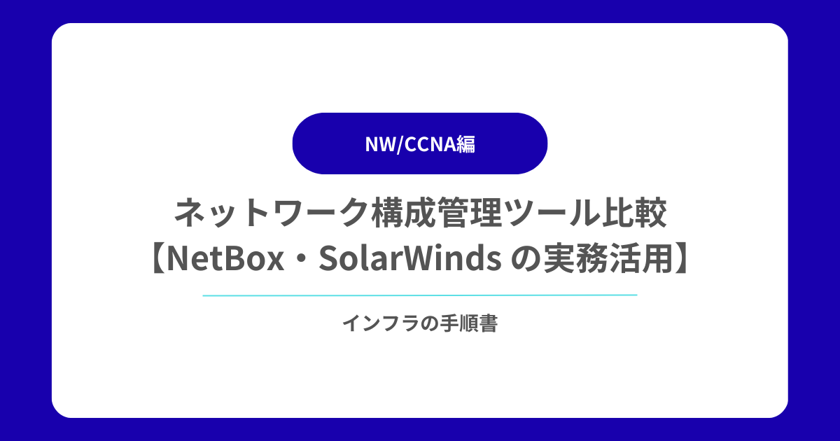ネットワーク運用を効率化したい場合は、 まず NetBox で構成台帳を整備し、 監視や設定バックアップが必要な場合は SolarWinds を併用する形が最も効果的です。