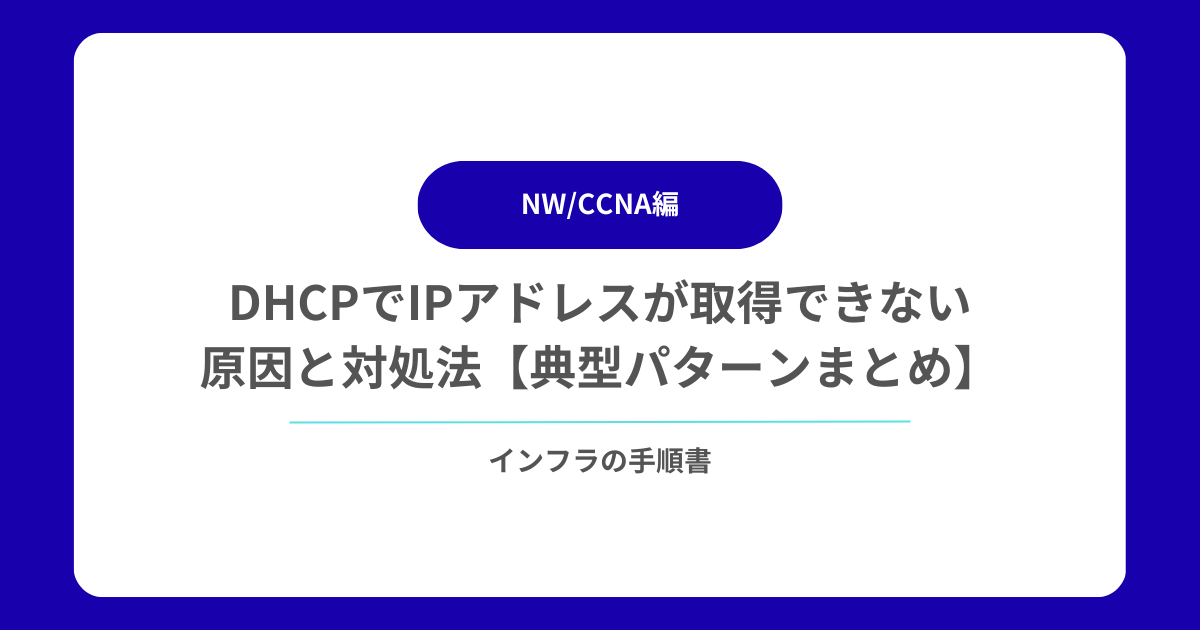 本記事では、DHCP で IP が取得できないときの典型的な原因・切り分け手順・対策を、ネットワーク実務者向けにわかりやすくまとめています。