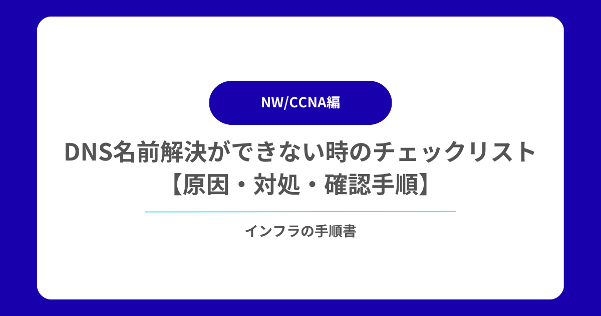 DNS(Domain Name System)は、インターネット通信の根幹を担う仕組みであり、名前解決ができないと Web サイト閲覧や各種サービスの利用ができなくなります。本記事では、DNS 名前解決ができない場合の原因と対処法を、実務で使えるチェックリスト形式で解説します。