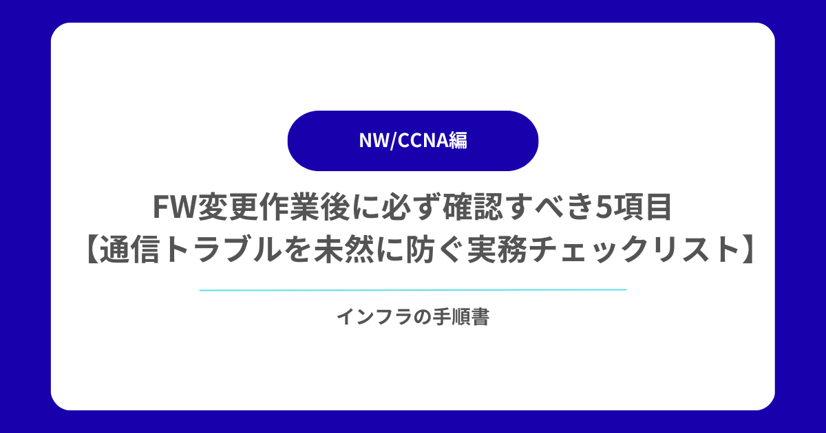 FW変更後に“必ず”確認すべき5項目実際の障害発生ポイント順 に解説します。