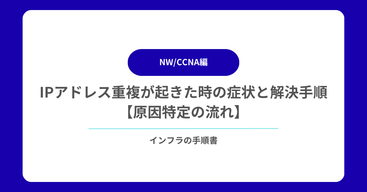 IP 重複はネットワーク障害の中でも発生頻度が高く、原因特定はシンプルですが、ARP 変動がヒントになる典型的なトラブルです。