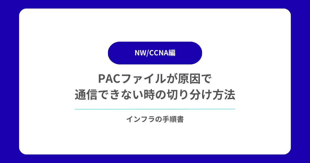 本記事では、PACファイルが原因で通信できない場合の切り分け方法を、 設計理解 → 症状別診断 → 具体的コマンド → 修正方法まで完全網羅します。