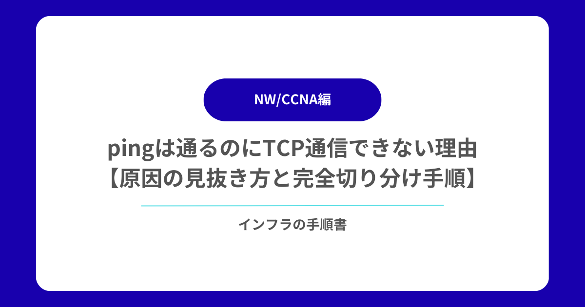 「pingは通るのにアプリケーション通信ができない」「特定のポートだけ接続できない」 このようなトラブルの多くは、TCPコネクション確立(3ウェイハンドシェイク)の …