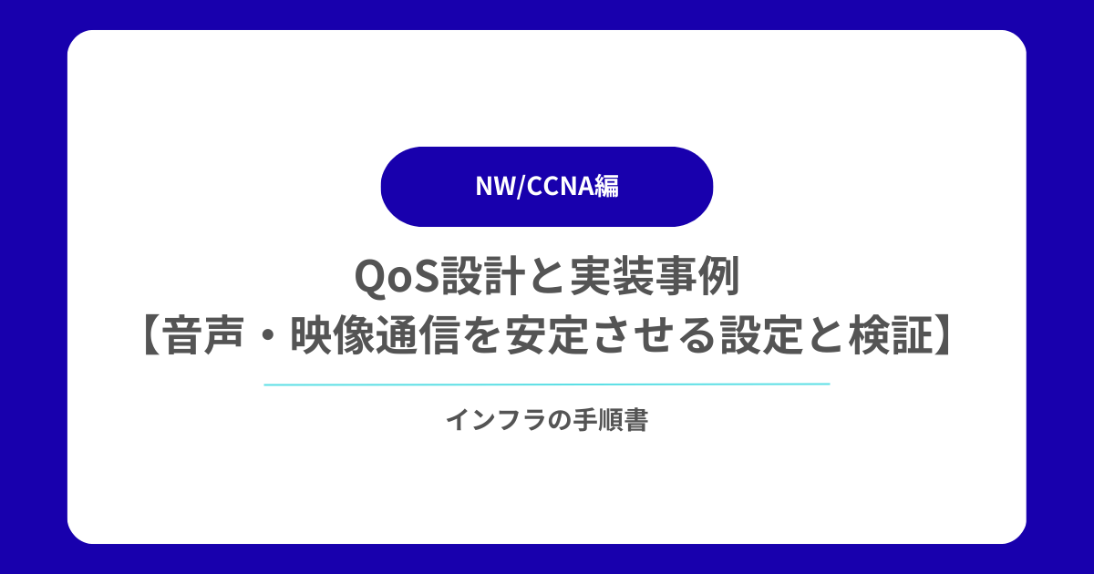 この記事では、QoS の基本概念から、音声・映像通信を安定させるための最適な設計ポイント、Cisco 機器を例とした実装設定、さらに QoS が正常に動作しているかを判断するための検証手順まで、実務でそのまま使える形で解説します。