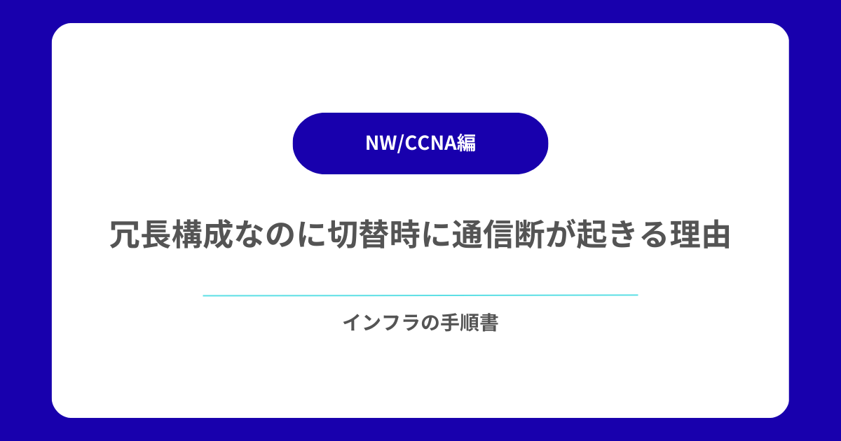 本記事では、切替時に通信断が起きる本質的な理由を分解し、 具体的な診断方法と解決策まで解説します。 この記事だけで原因特定から改善方針決定まで可能です。
