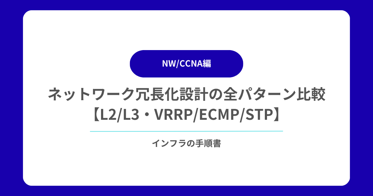 ネットワークの可用性を上げるための冗長化は、設計方針(L2中心かL3中心か)や規模、用途によって最適解が変わります。本記事は現場で判断・実装できるように、主要な冗長化方式を比較し、設計例・注意点・検証手順まで実務目線でまとめた決定版ガイドです。