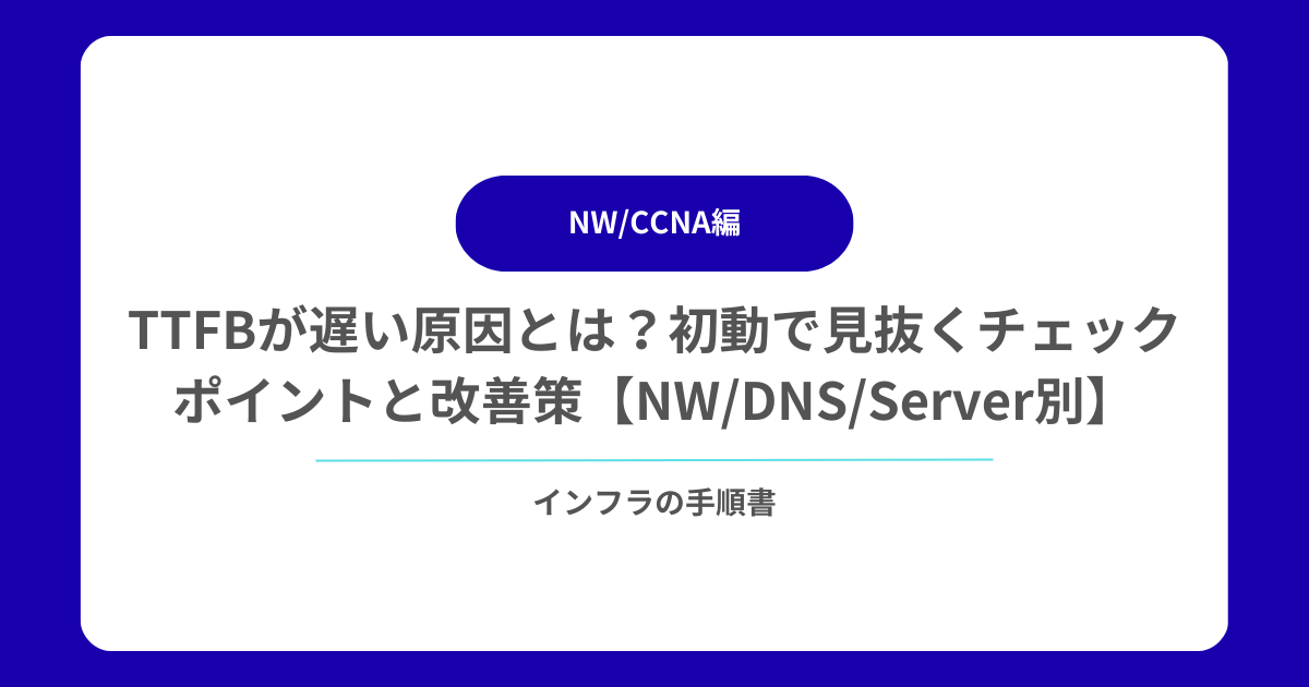 本記事では、実務で即使えるように TTFBが遅くなる原因をレイヤ別(NW / DNS / Server)に切り分け、 具体的な確認方法と改善策を解説します。