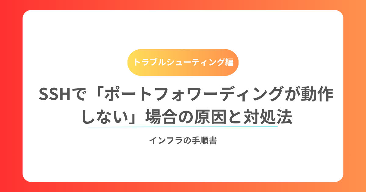 SSH のポートフォワーディングが動作しない場合は、次の順で確認しましょう。