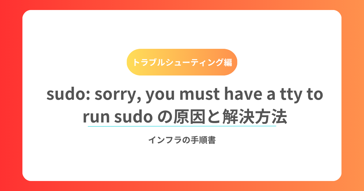 実行に TTY(端末)接続が必須 という制約が設定されていることが原因です。特に Ansible やスクリプトで sudo