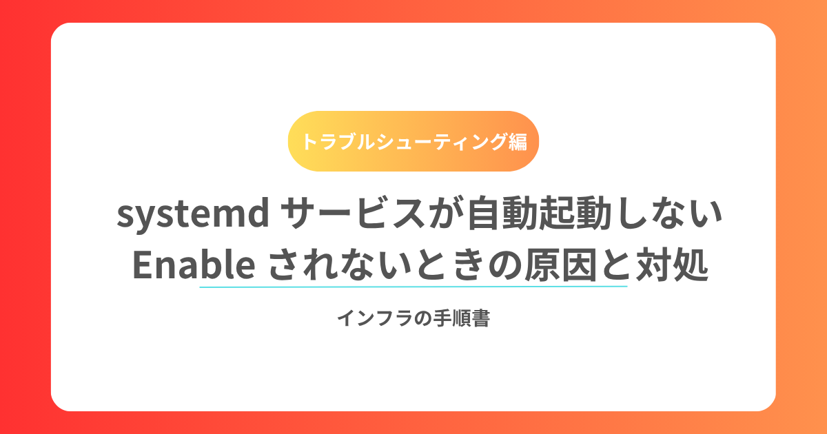 本記事では、systemd サービスが自動起動しない/Enable されないときの確認ポイントと解決方法をまとめます。
